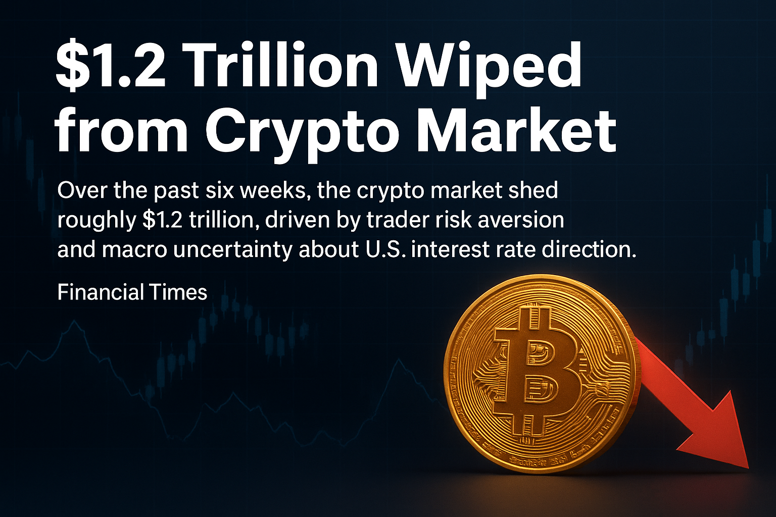 Over the past six weeks, the global cryptocurrency market has experienced one of its most dramatic downturns in recent memory, shedding roughly $1.2 trillion in value. According to the Financial Times, this sharp decline has been driven by a combination of trader risk aversion and macro uncertainty, particularly surrounding the direction of U.S. interest rates.