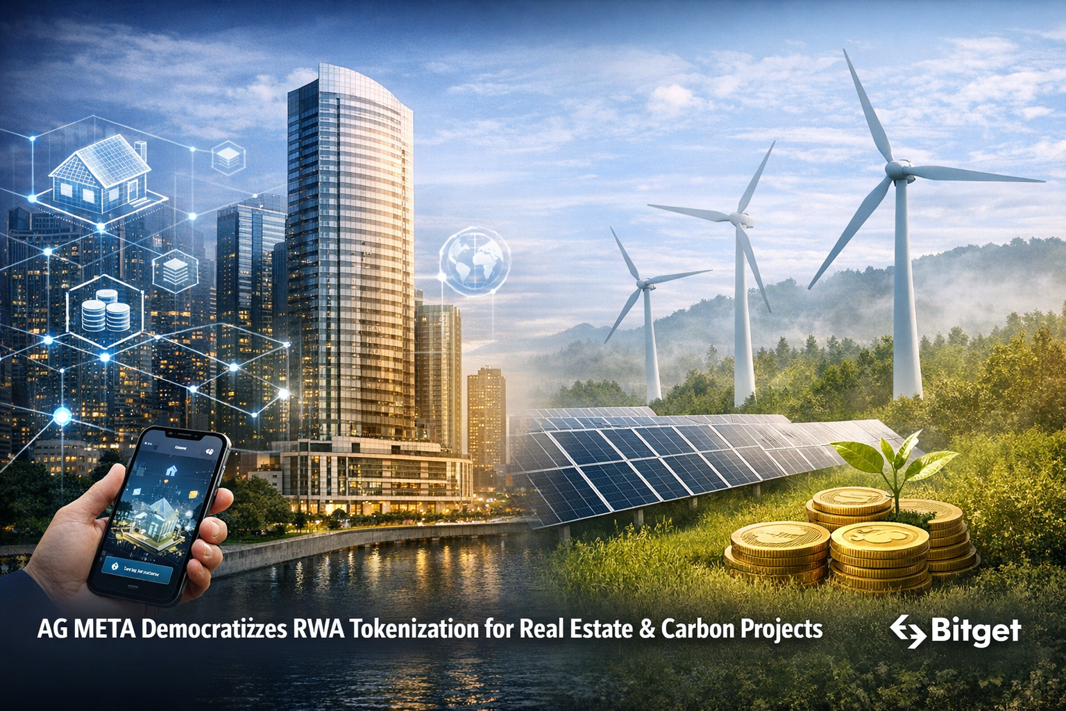The image accompanying this announcement visually captures AG META’s mission: a seamless blend of modern cityscapes, blockchain infrastructure, and renewable energy landscapes. It symbolizes the transition from siloed financial systems to an interconnected digital economy where capital, technology, and sustainability coexist.