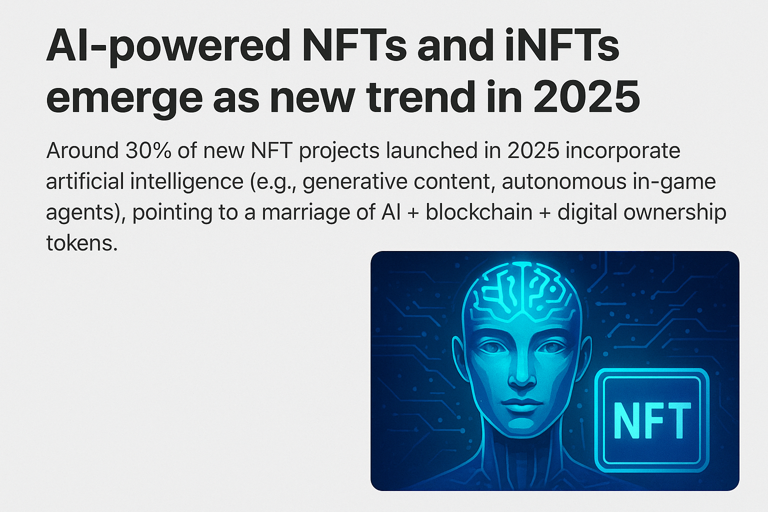 AI-powered NFTs and iNFTs represent one of the most significant evolutions in Web3 since the invention of the ERC-721 token. With nearly one-third of 2025’s new NFT projects incorporating AI, the trend is not only growing—it’s becoming the new standard.