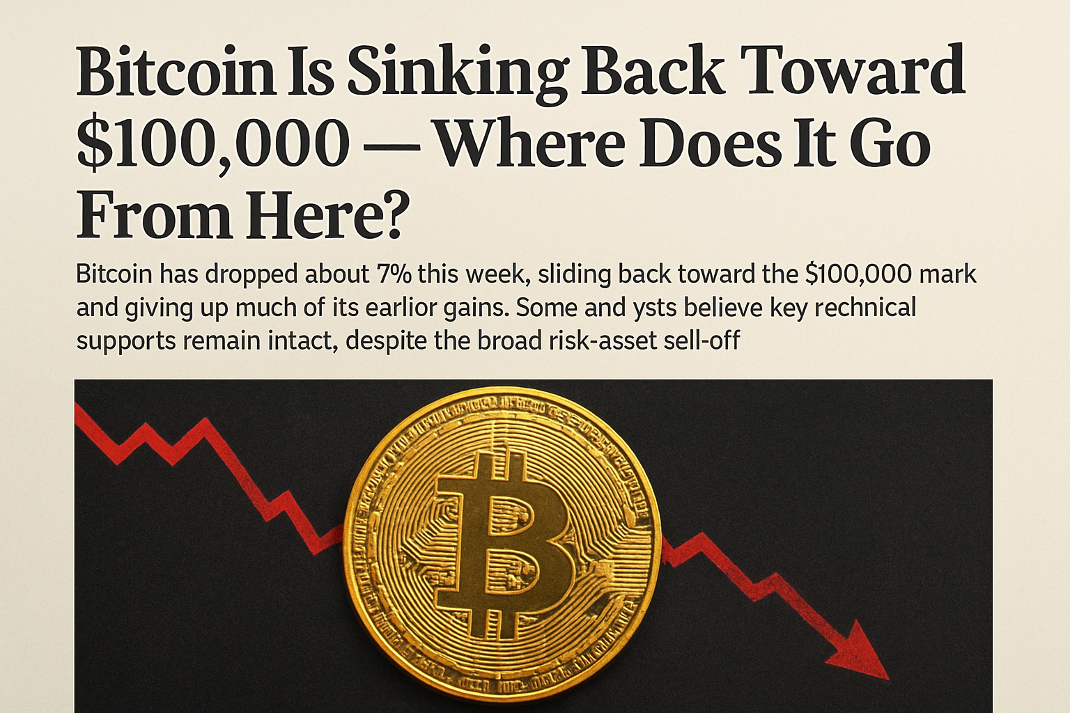 After months of relentless bullish momentum that saw Bitcoin surge well above $120,000, the world’s leading cryptocurrency has suddenly found itself under pressure again. This week alone, Bitcoin has fallen roughly 7%, sliding back toward the $100,000 threshold and giving up much of its early October gains. The sell-off has rekindled debate across the crypto community: is this merely a healthy correction within a larger bull market, or the first sign of a deeper retracement?