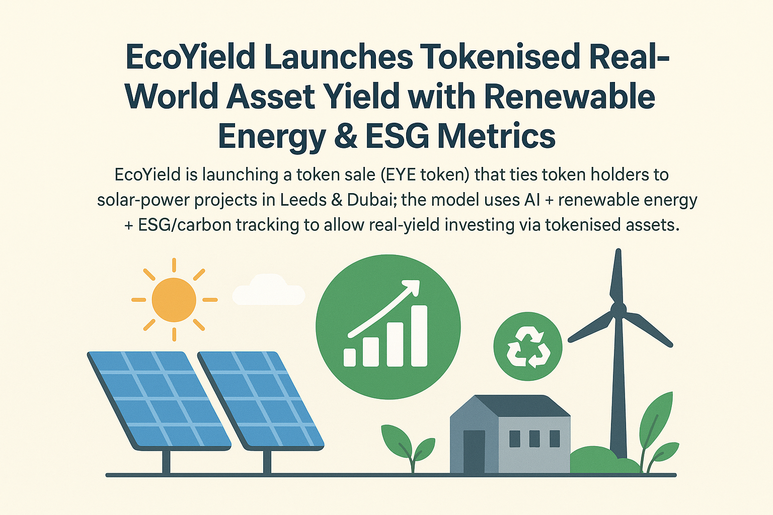 The fusion of clean energy, blockchain, and artificial intelligence has taken another leap forward with EcoYield’s launch of its EYE token — a blockchain-based asset that allows investors to earn real-world yield from renewable energy projects. The initiative marks a significant evolution in sustainable finance, connecting decentralized technology with tangible solar-power infrastructure in Leeds (UK) and Dubai (UAE).