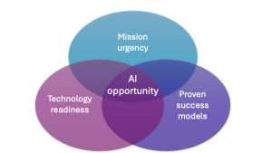 - Technology readiness – Production-ready AI solutions can now be deployed securely and at scale, with unprecedented compute capacity being built specifically for US government requirements.