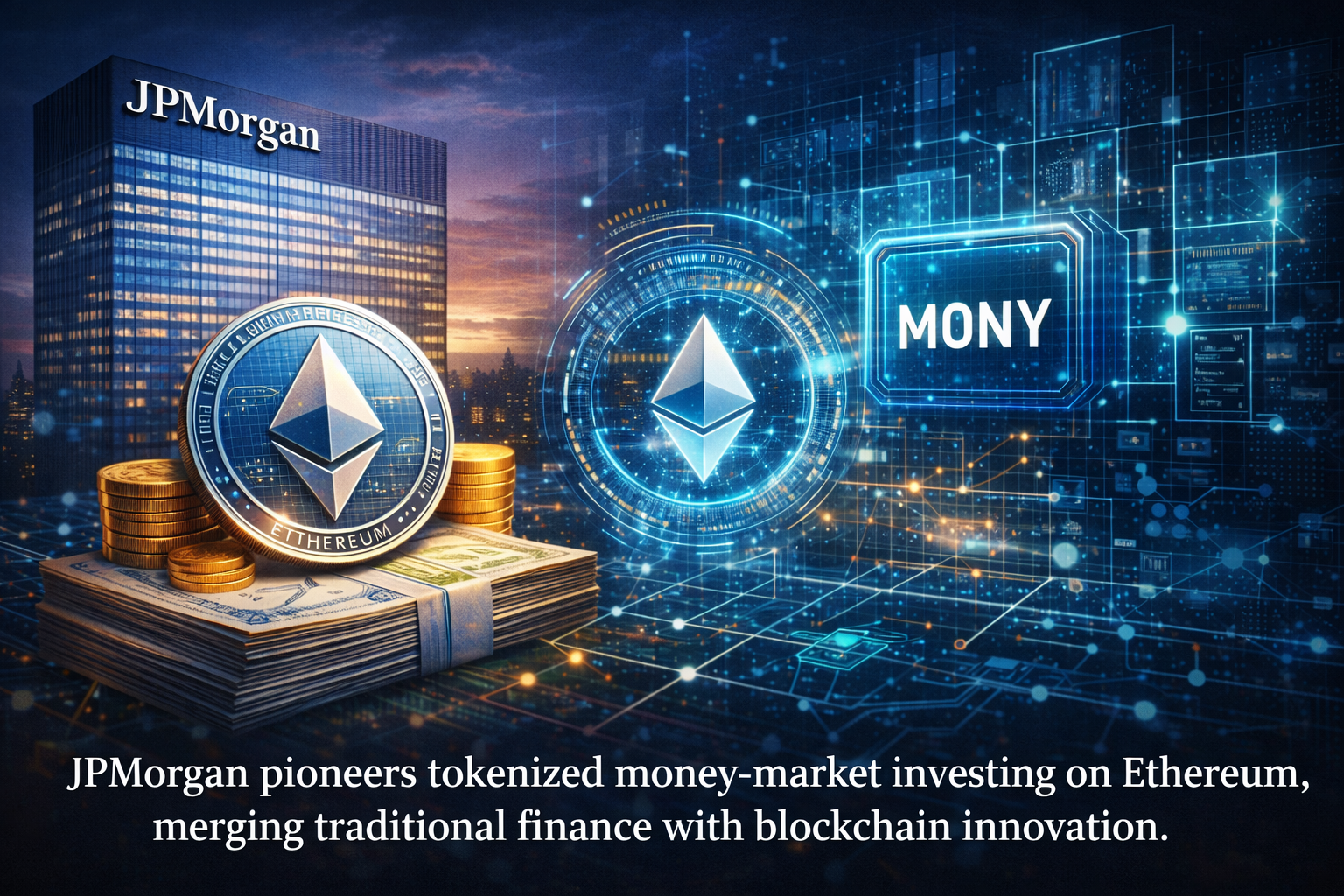 “JPMorgan pioneers tokenized money-market investing on Ethereum, merging traditional finance with blockchain innovation.”