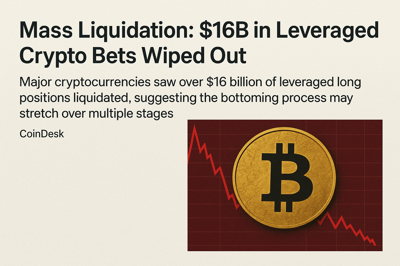 The cryptocurrency market has been rocked once again by a massive wave of liquidations, wiping out over $16 billion in leveraged positions across major digital assets. The sell-off, which swept through Bitcoin, Ethereum, and dozens of top altcoins, underscores the extreme volatility and fragility of a market still struggling to find its footing after months of speculative excess.
