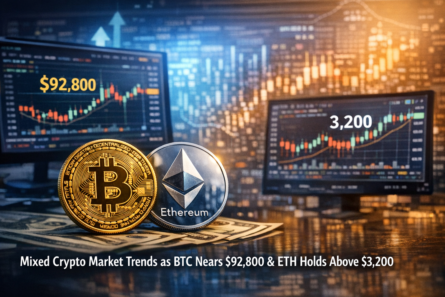 The cryptocurrency market delivered a mixed performance today, reflecting a broader phase of consolidation as investors digest recent gains and shifting sector dynamics. Bitcoin (BTC) continues to trade near the $92,800 level, while Ethereum (ETH) is holding firm above $3,200, signaling resilience despite short-term volatility across the digital asset space.
