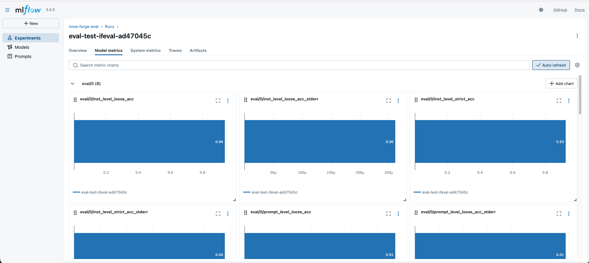 These tell you whether data mixing is doing its job. If MMLU drops significantly from the baseline, your mix needs more Nova data. If IFEval drops, increase the instruction-following weight.