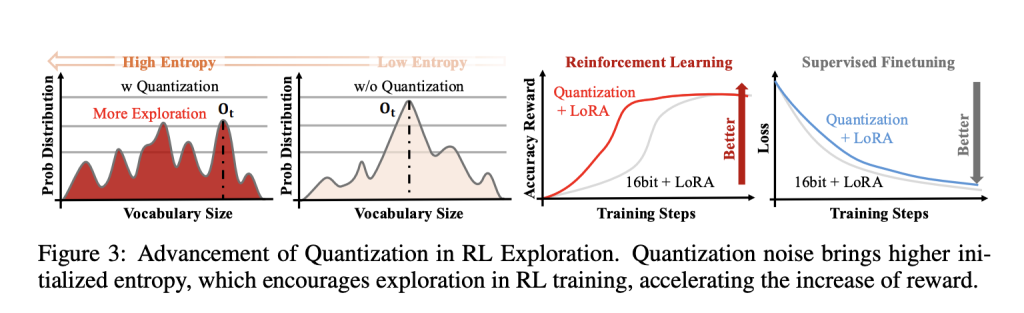 - Quantization acts as exploration: FP4 increases policy entropy, while Adaptive Quantization Noise (AQN) schedules channel-wise noise via LayerNorm scales.