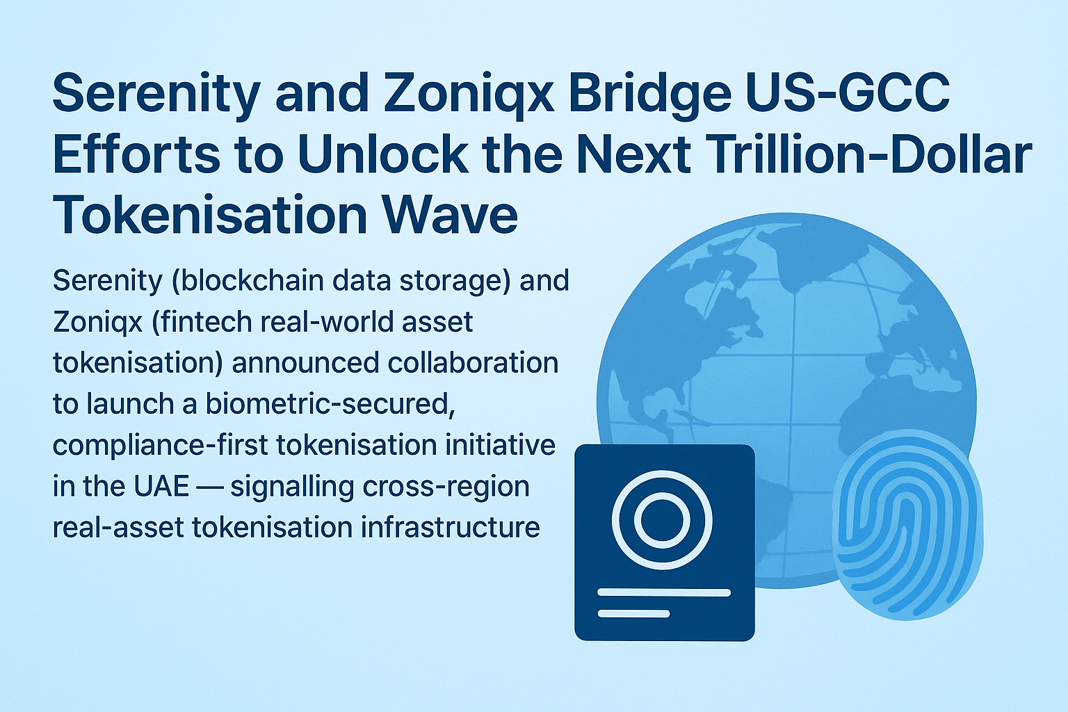 In a bold step toward global digital asset infrastructure, Serenity, a leader in blockchain data storage, and Zoniqx, a pioneering fintech company in real-world asset tokenisation, have announced a strategic partnership to build a biometric-secured, compliance-first tokenisation ecosystem in the United Arab Emirates (UAE). The collaboration marks a milestone in connecting U.S. and Gulf Cooperation Council (GCC) markets under a unified framework designed to enable institutional-grade tokenisation of physical and financial assets.