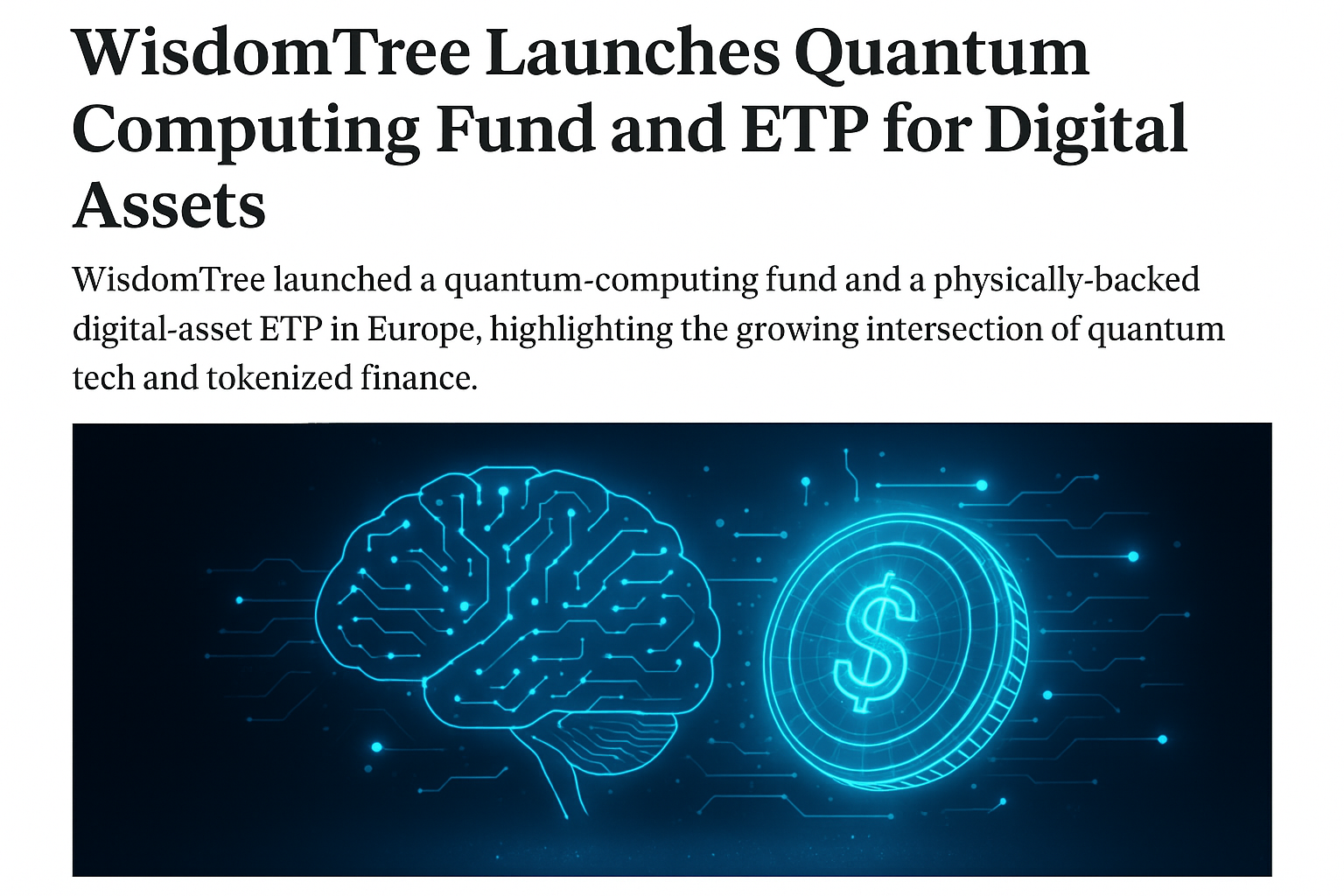 In a groundbreaking move that underscores the accelerating convergence of advanced technology and finance, WisdomTree has announced the launch of its new Quantum Computing Fund alongside a physically backed Digital Asset ETP in Europe. The initiative highlights how quantum innovation is beginning to reshape the infrastructure of global markets — from algorithmic optimization to secure blockchain integration.