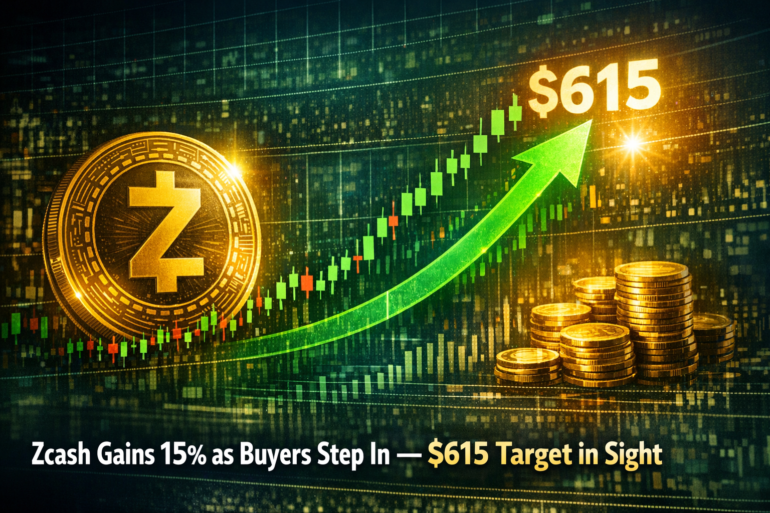 Zcash (ZEC) has emerged as one of today’s standout performers in the cryptocurrency market, posting a sharp 15% price increase as renewed buying pressure pushes the asset higher. The sudden upside move has caught the attention of traders and analysts alike, with many now pointing to $615 as a potential medium-term target if bullish momentum continues.